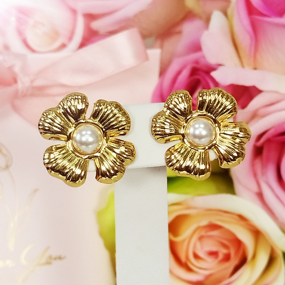 Kolczyki wkrętki pozłacane kwiaty perła stal chirurgiczna 316L