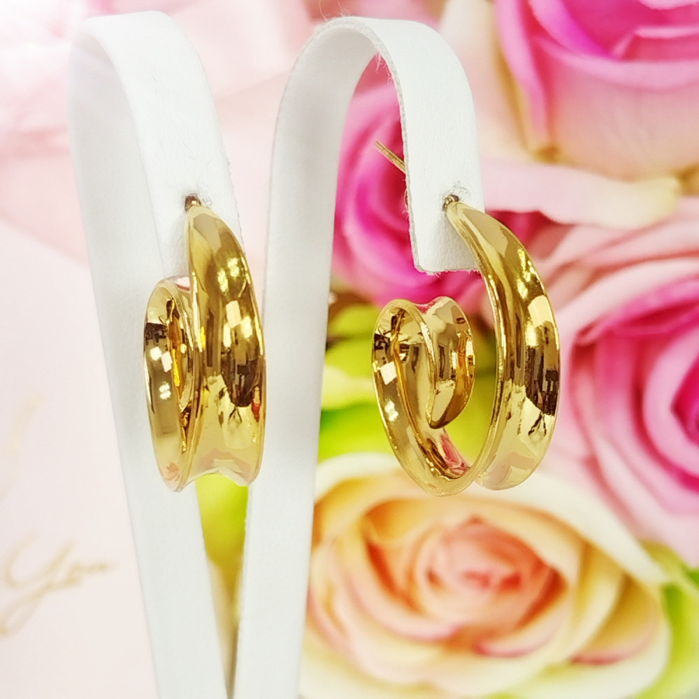 Kolczyki wiszące koła złote ozdobne gładkie zawijane stal chirurgiczna 316L