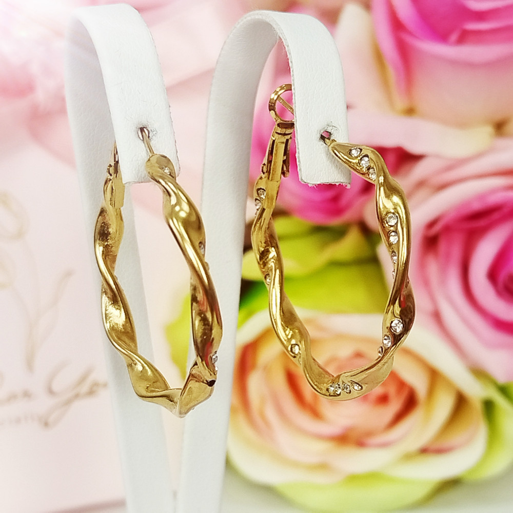Kolczyki wiszące koła złote ozdobne kręcone stal chirurgiczna 316L