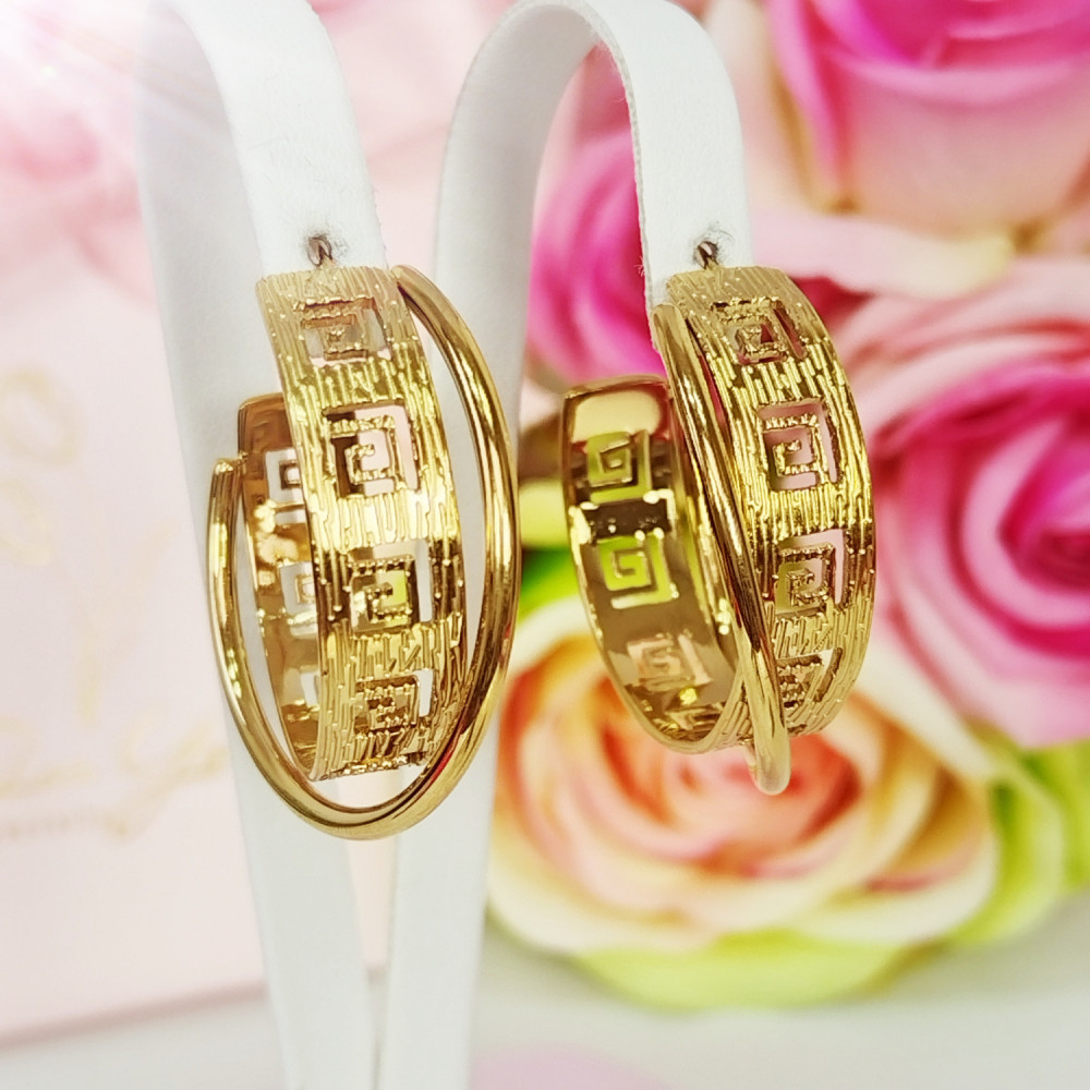 Kolczyki wiszące koła złote ozdobne grecki wzór stal chirurgiczna 316L
