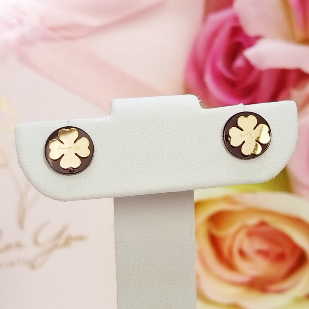 Kolczyki wkrętki pozłacane koniczynka stal chirurgiczna 316L