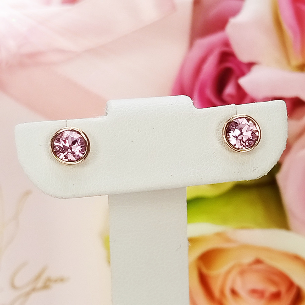 Kolczyki wkrętki pozłacane diamenciki różowe a stal chirurgiczna 316L