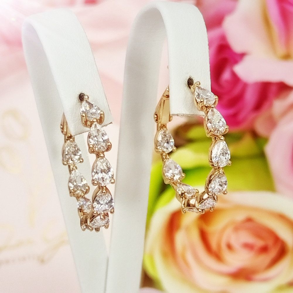 Kolczyki wiszące złote koła kryształki stal chirurgiczna 316L