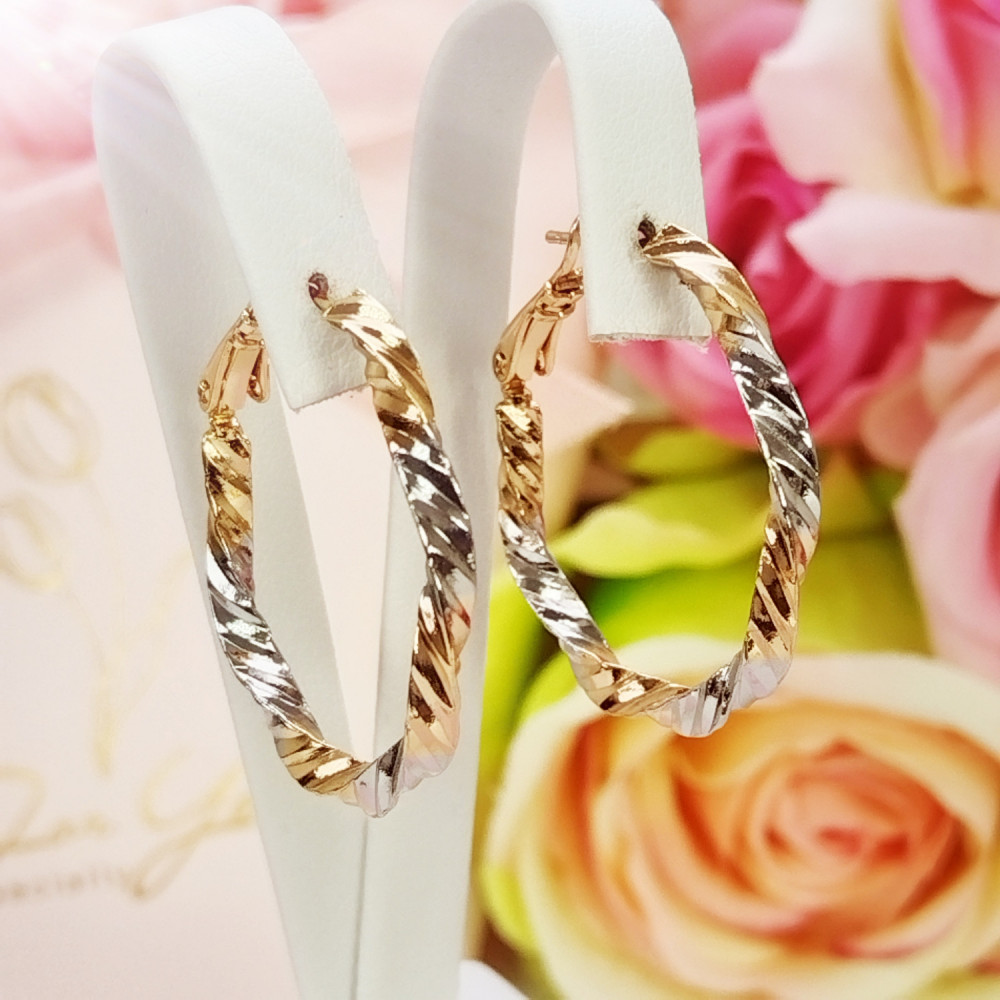 Kolczyki wiszące złote koła plecione złoto-srebrne stal chirurgiczna 316L