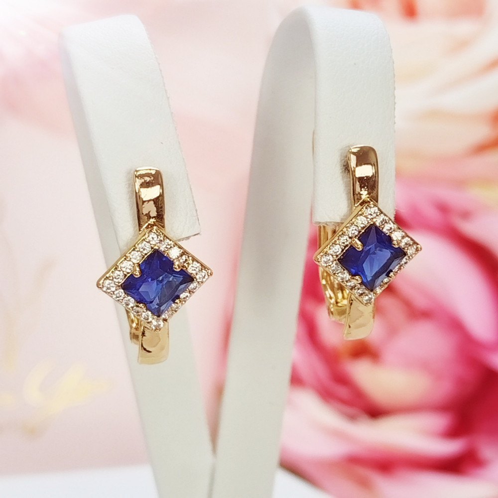 Kolczyki wiszące złote Szafir koła stal chirurgiczna 316L