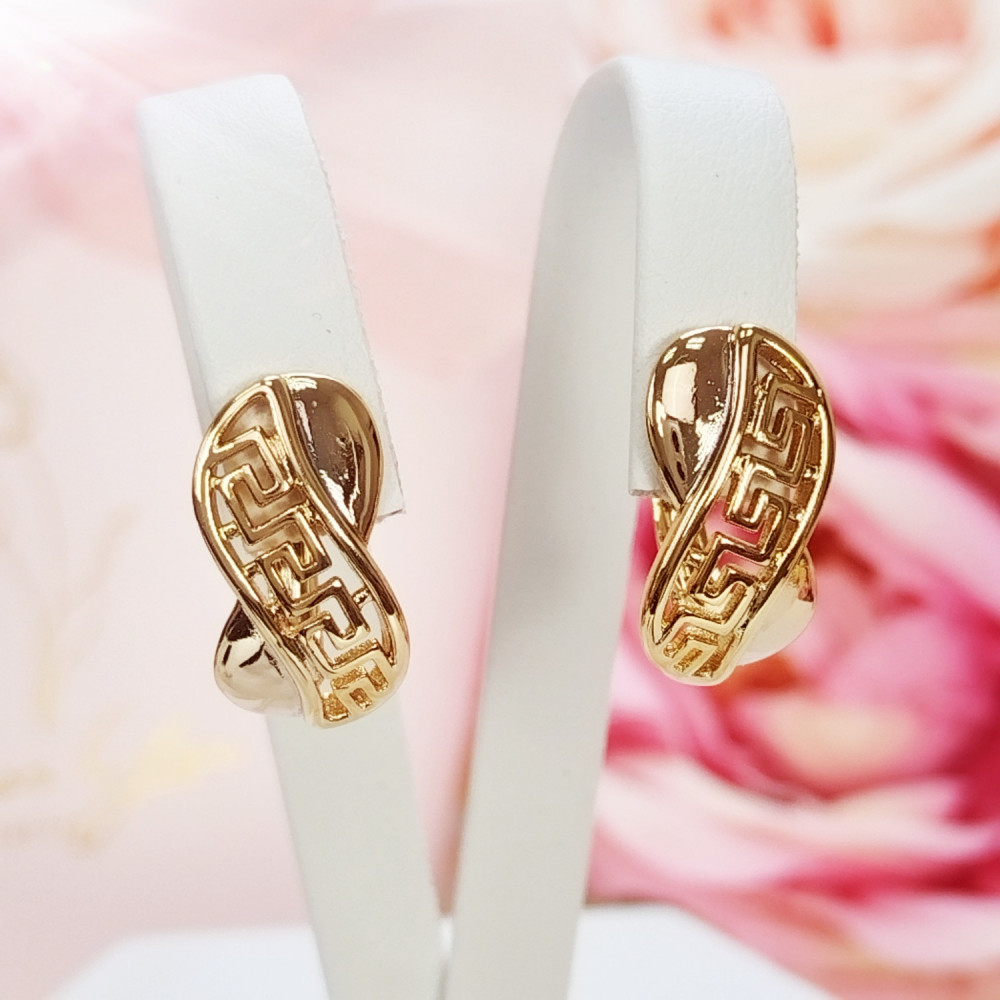 Kolczyki wiszące złote grecki wzór koła stal chirurgiczna 316L