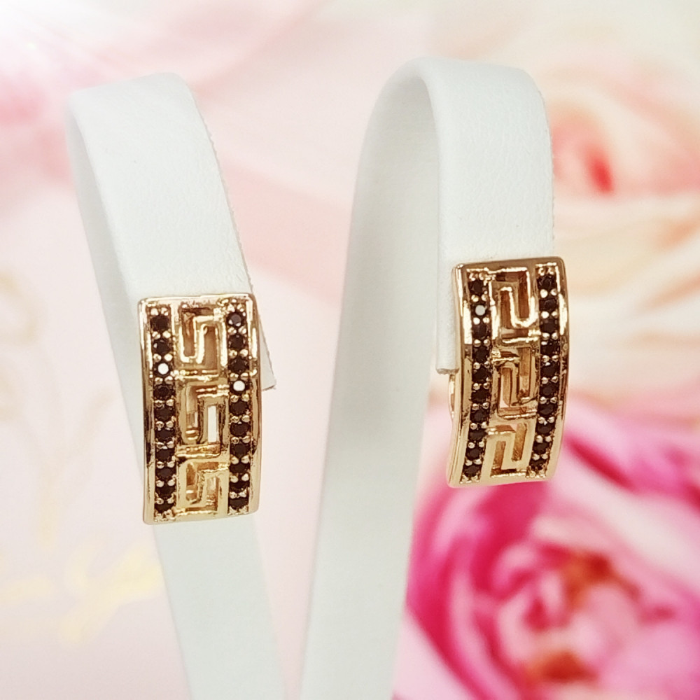 Kolczyki wiszące złote grecki wzór koła stal chirurgiczna 316L