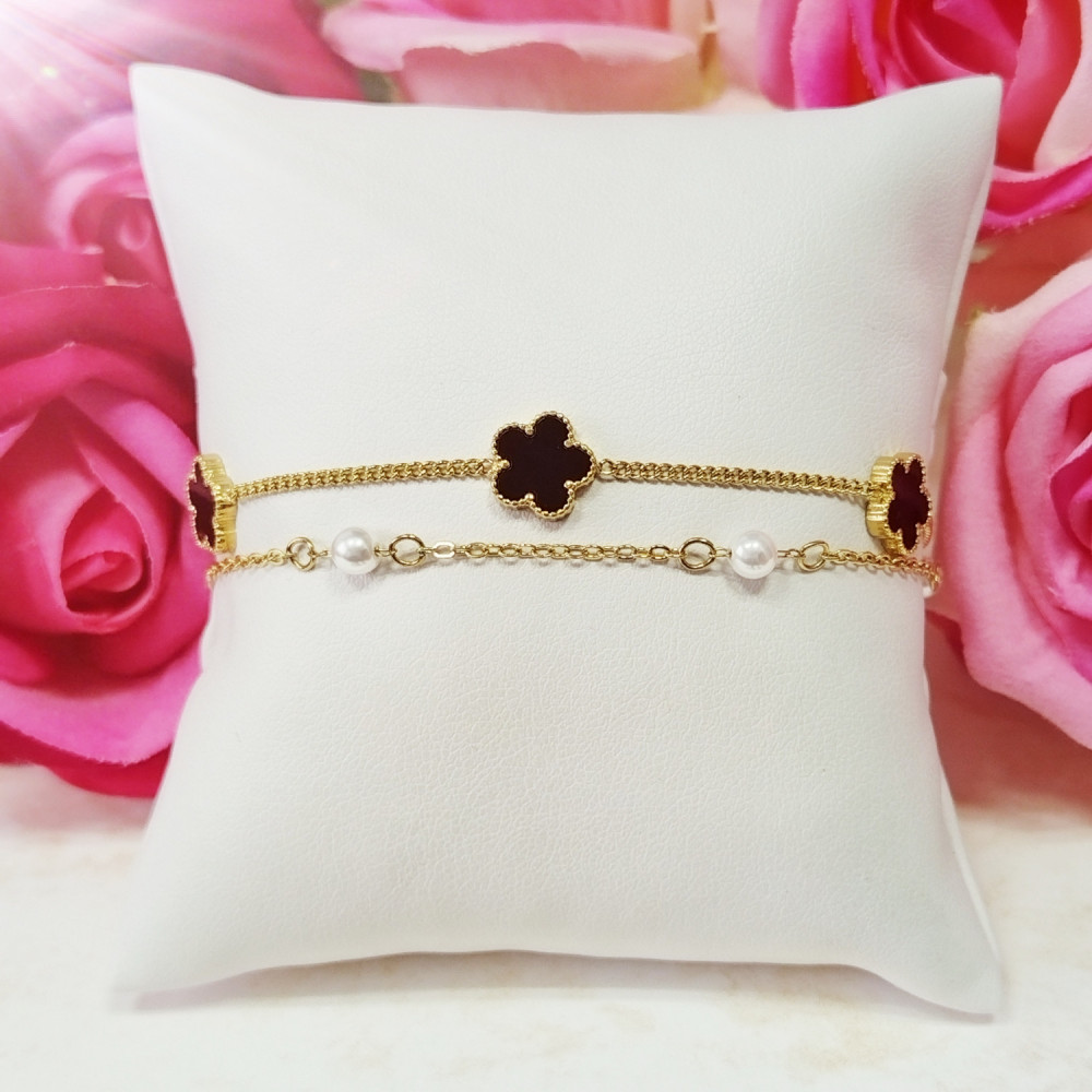Bransoletka złota koniczynki podwójna ozdobna stal chirurgiczna 316L