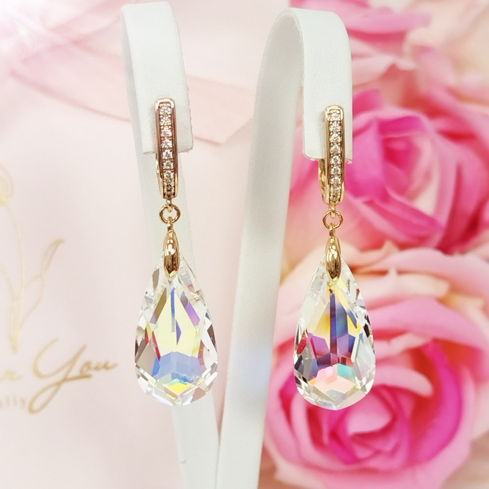 Kolczyki wiszące złote CRYSTAL SWAROVSKI® stal chirurgiczna 316L