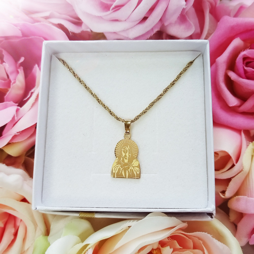 Naszyjnik złoty medalik Matka Boska stal chirurgiczna 316L