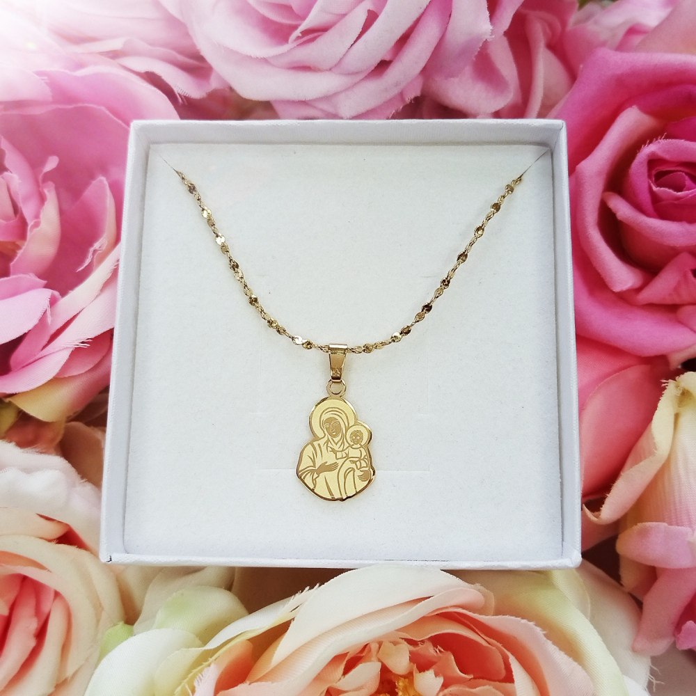 Naszyjnik złoty medalik Matka Boska stal chirurgiczna 316L