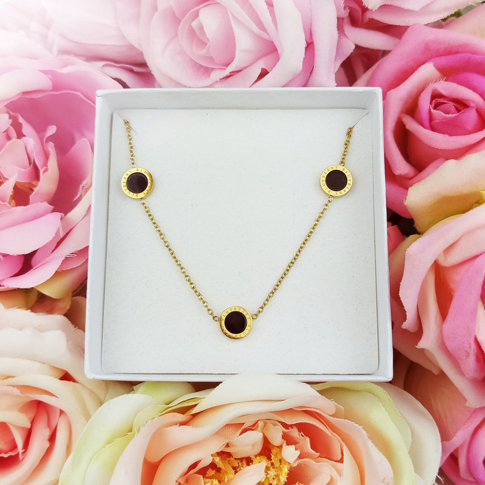 Naszyjnik celebrytka złota zegar koło czarne stal chirurgiczna 316L