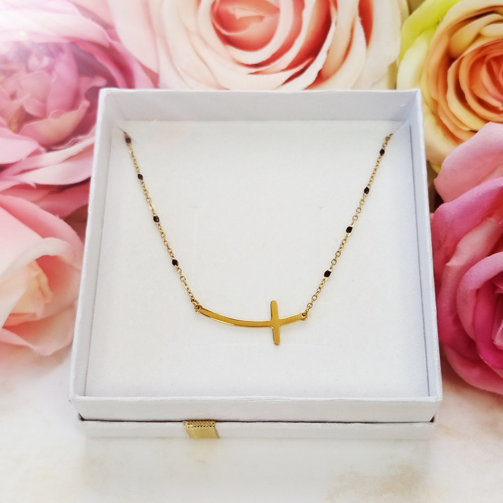 Naszyjnik celebrytka złota krzyż delikatny stal chirurgiczna 316L
