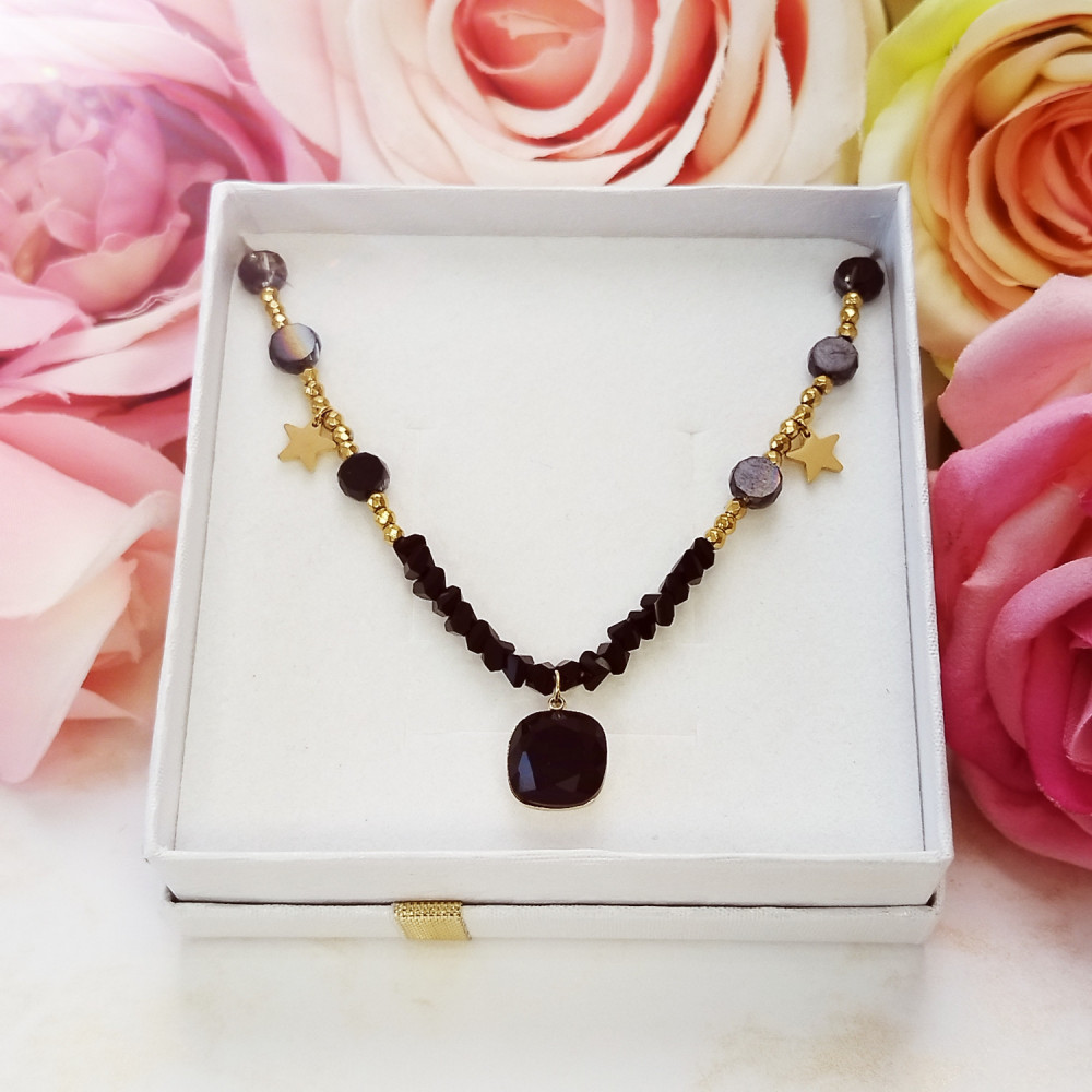 Naszyjnik celebrytka złota Turmalin stal chirurgiczna 316L