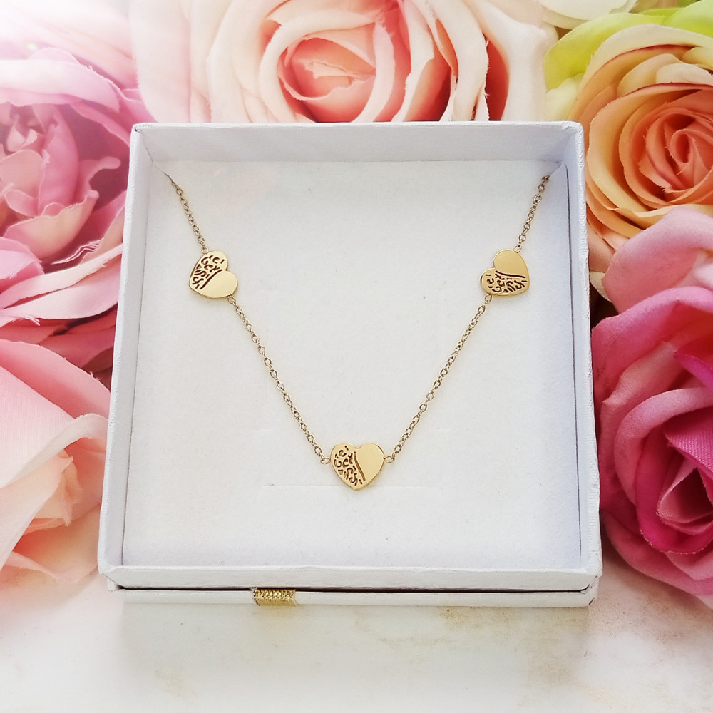 Naszyjnik celebrytka złota Serca stal chirurgiczna 316L
