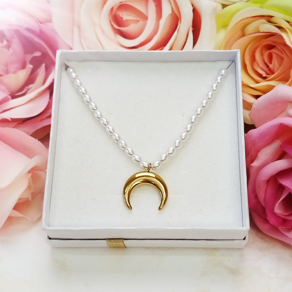 Naszyjnik perłowy Księźyc stal chirurgiczna 316L