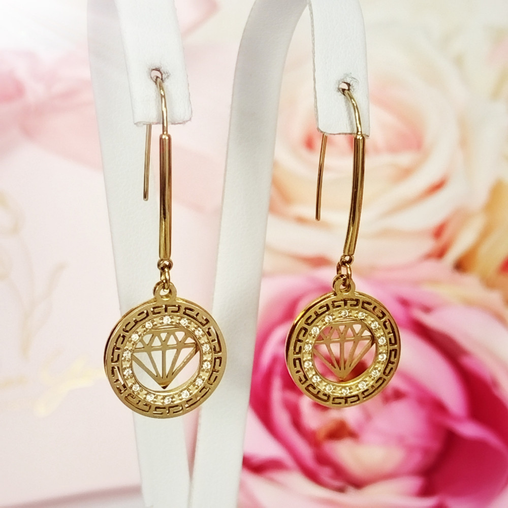 Kolczyki wiszące złote Diamenty stal chirurgiczna 316L