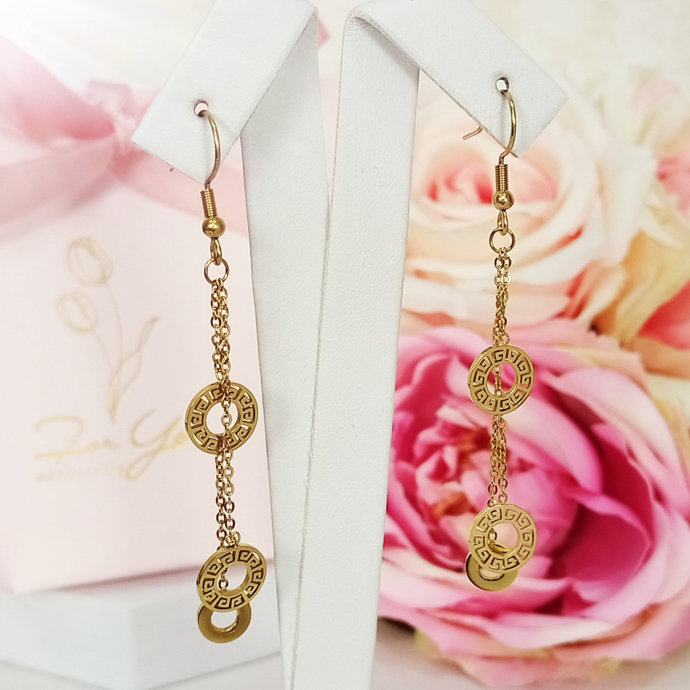 Kolczyki wiszące złote Grecki wzór stal chirurgiczna 316L