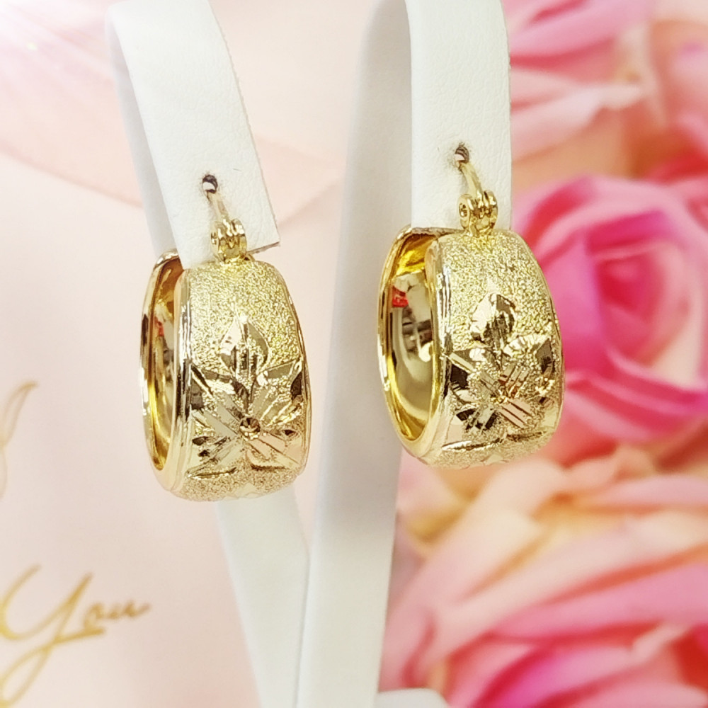 Kolczyki wiszące złote grecki wzór koła stal chirurgiczna 316L