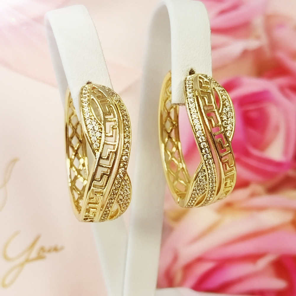 Kolczyki wiszące złote grecki wzór koła stal chirurgiczna 316L