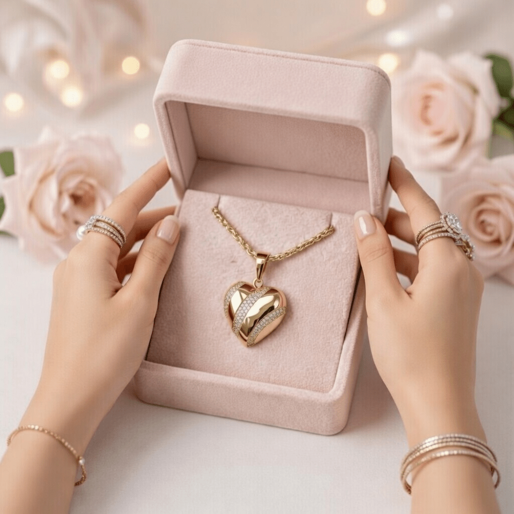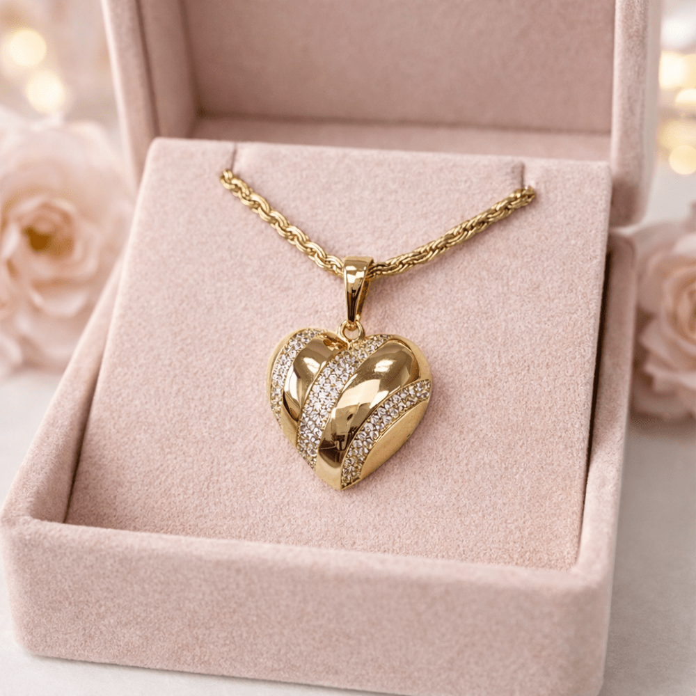Komplet biżuterii Serce – złoty naszyjnik damski ze stali chirurgicznej 316L