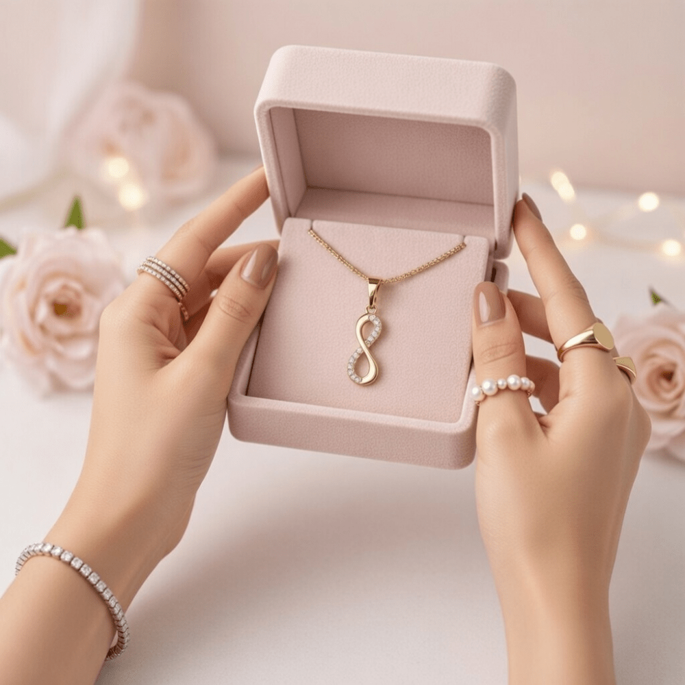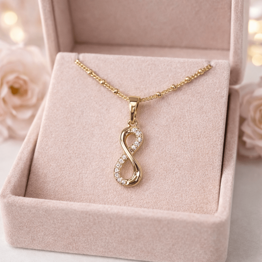 Komplet biżuterii Nieskończoność – złoty naszyjnik damski ze stali chirurgicznej 316L