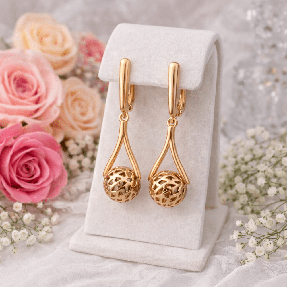 Kolczyki wiszące Kulki ażurowe złote koła stal chirurgiczna 316L